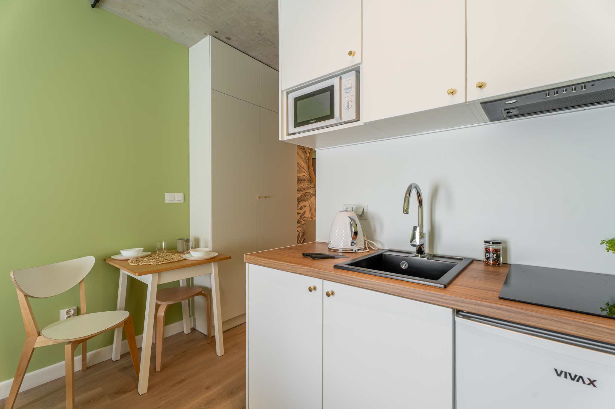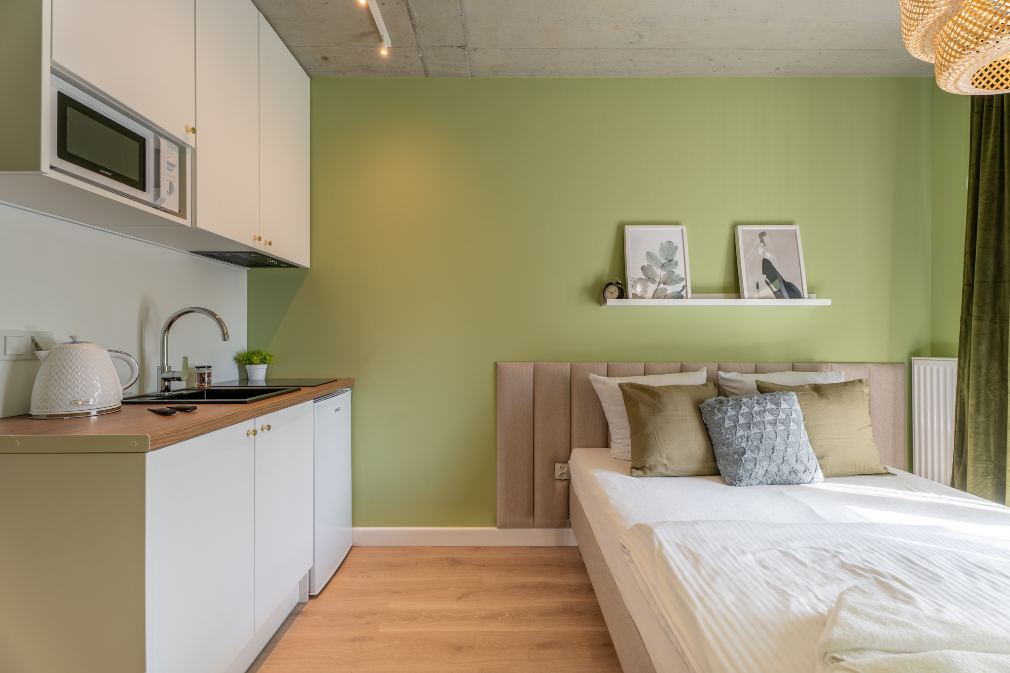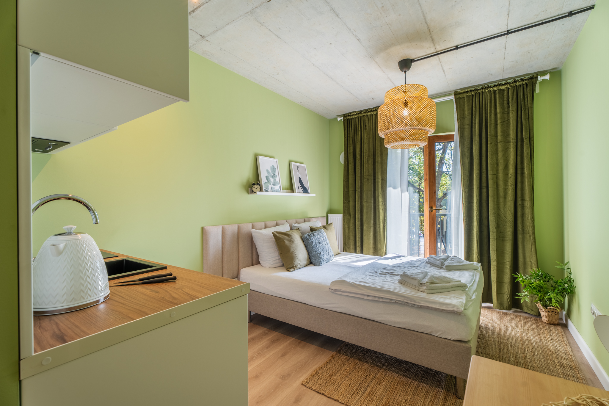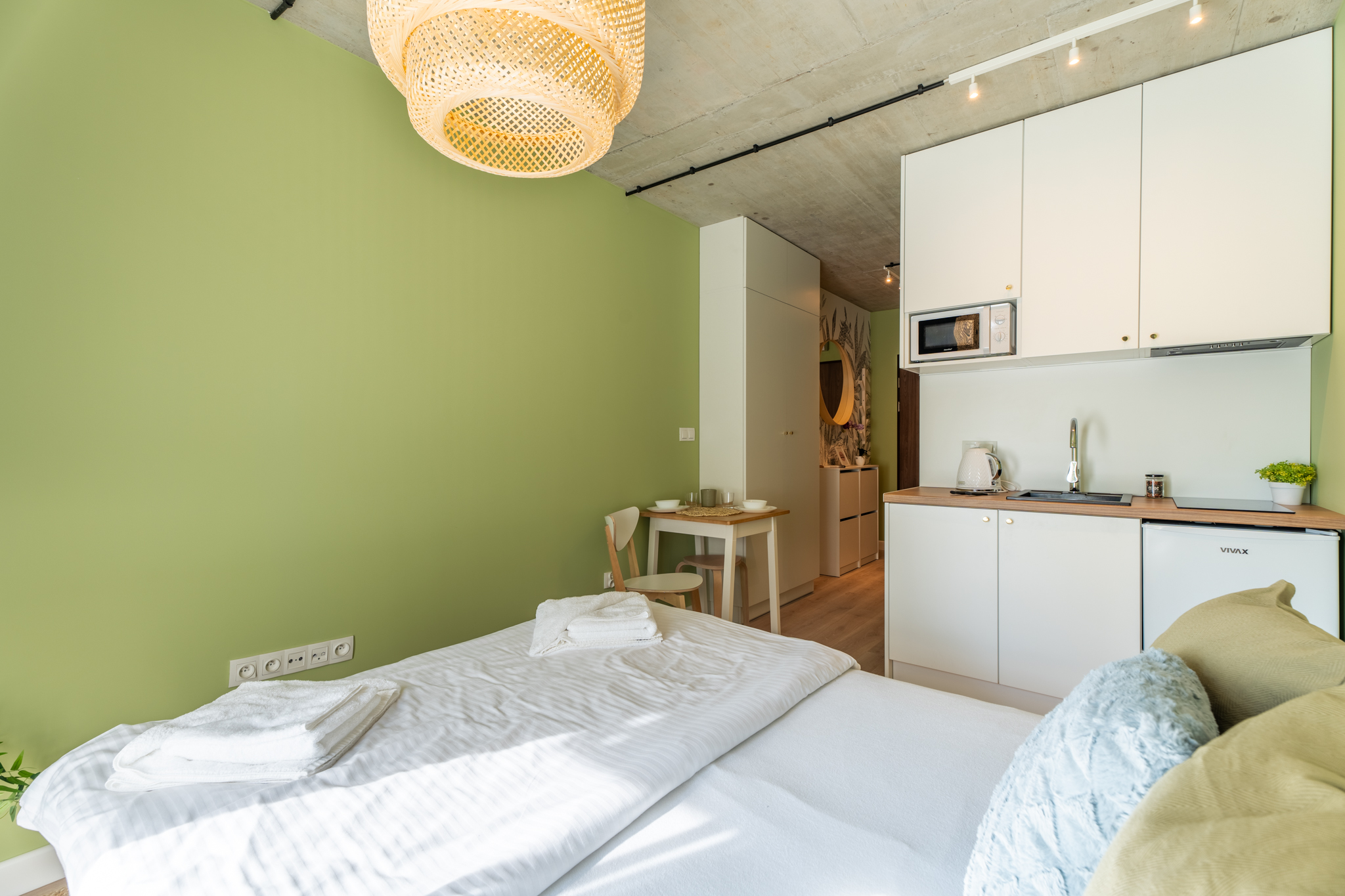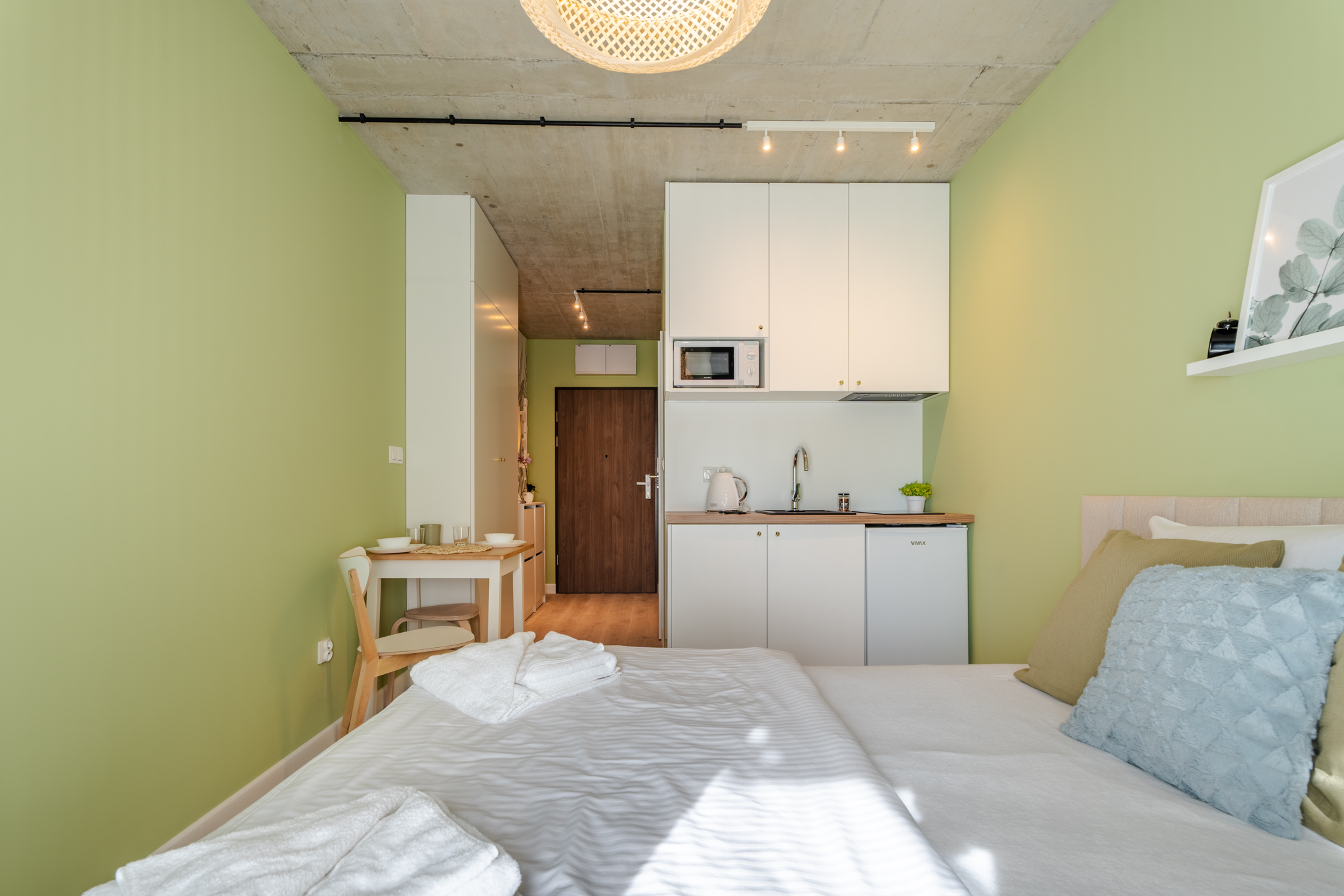 Lokal wyposażony jest w standardzie pokoju hotelowego ponieważ z racji dużego doświadczenia na rynku szczecińskim w podobnej inwestycji wiemy, że właśnie takie umeblowanie pozwala osiągnąć największe stopy zwrotu poprzez mieszanie wynajmu długo i krótkoterminowego.